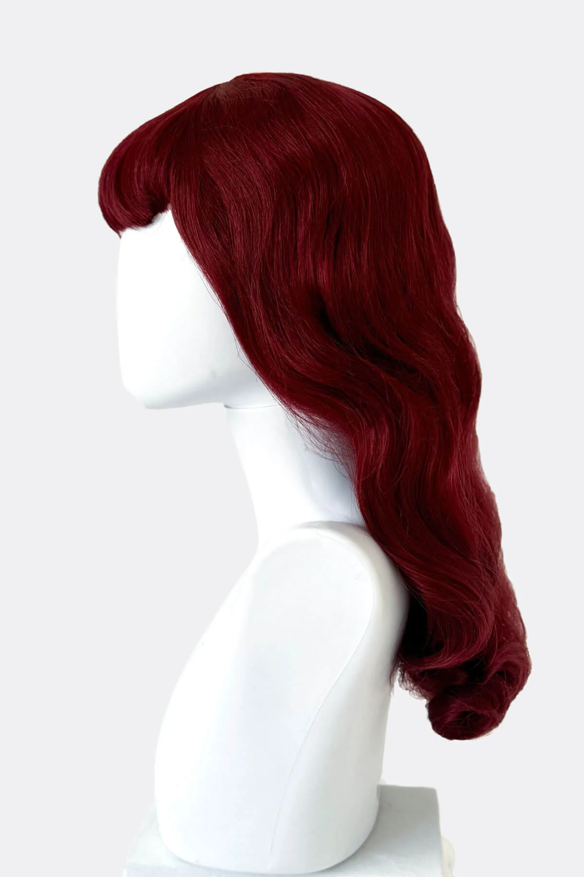 Long copper red pin-up style wig, gently wavy with short fringe: Josefina