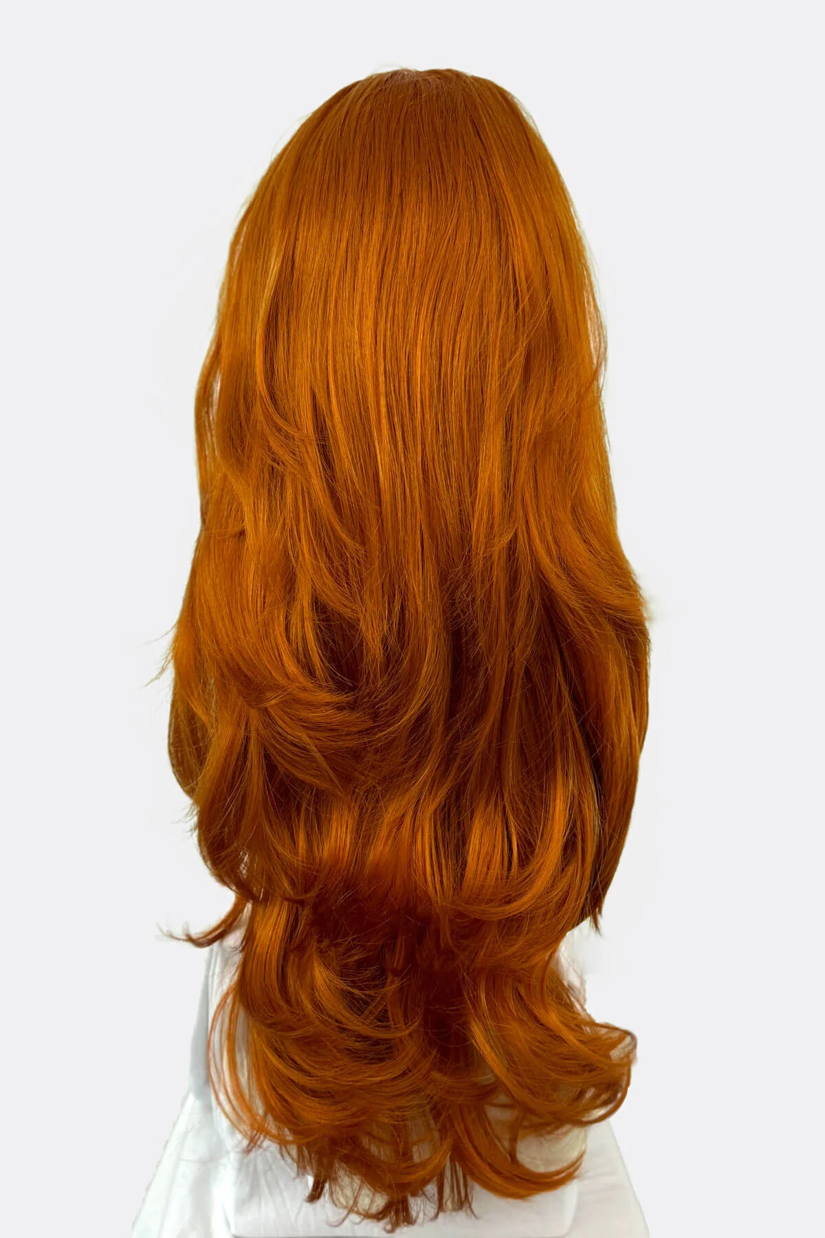 Long, wavy ginger half wig hairpiece extension (3/4 wig): Eris